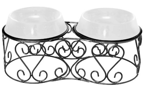 Platinum Pets Deluxe Scroll Double Diner Stand with 2 Pearl White Bowls 6 1 4 Cup